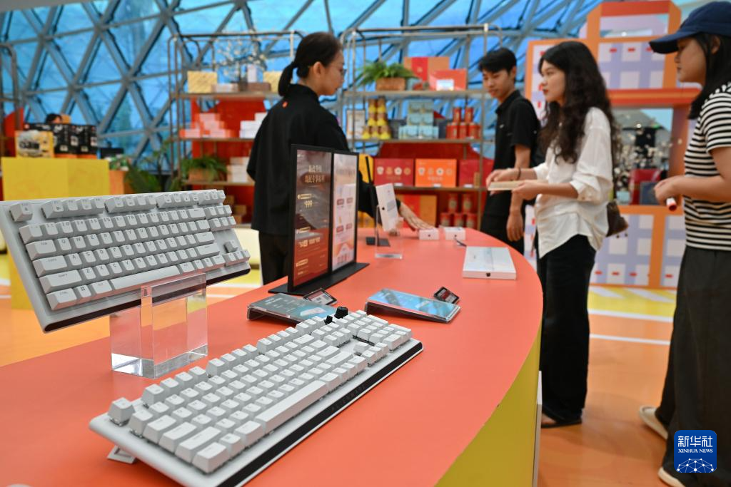 11月9日,顾客在三亚国际免税城选购电子产品。(新华社记者郭程摄)