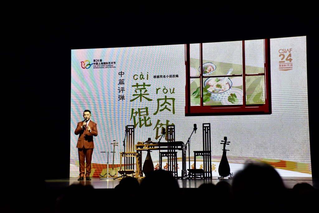 电影《菜肉馄饨》首映后两天,上海评弹团的中篇评弹《菜肉馄饨》也火热“上桌”。11月8日、9日晚,刚“出锅”的评弹版《菜肉馄饨》在上海兰心大戏院开启首演。作为第24届中国上海国际艺术节参演剧目,首轮两场演出反响超热烈。电影的热度加上评弹观众和上海市民的高涨热情,让兰心大戏院里满是浓浓的上海城市氛围。