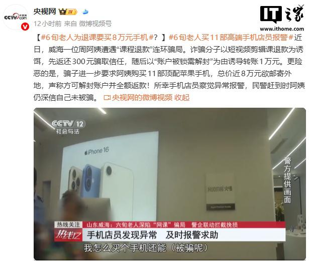 六旬老人陷“课程退款”骗局,买11部苹果手机时店员报警止损