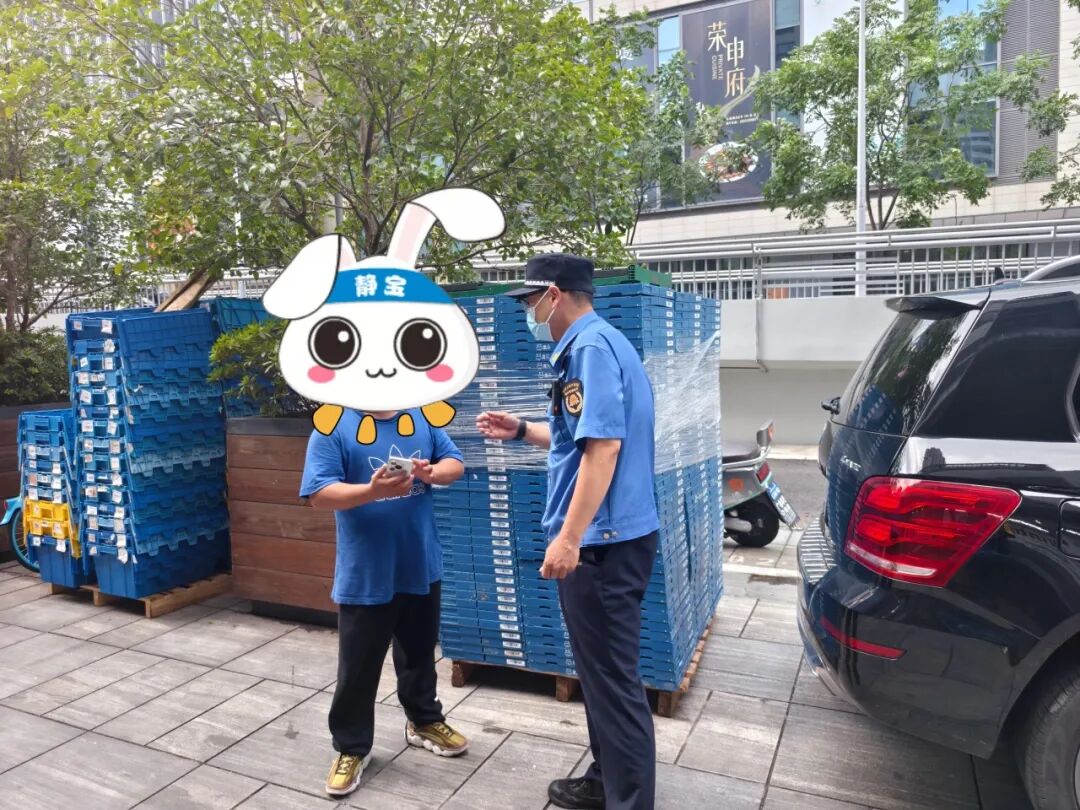 作为街道“骑守联盟”成员,综合行政执法队的徐湛在常态化走访联系快递、外卖站点过程中,接到位于河滨融景居民区一家盒马前置仓门店的求助,该门店反映正面临运输包装材料堆放难题。