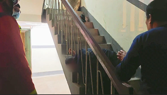 2025年9月,江西南昌市进贤县一位老人因中午饮酒后影响了行动能力,不慎在楼道摔倒,导致头部卡进栏杆,无法动弹。