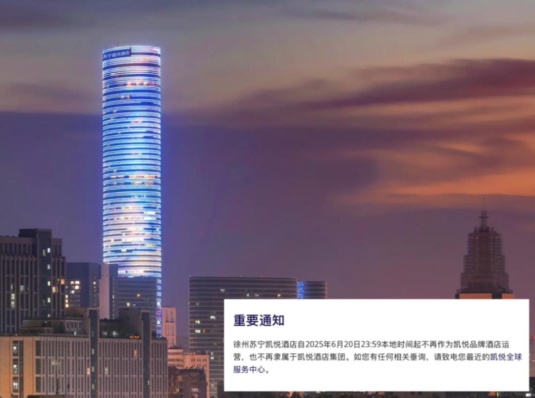 有意思的是,这三家酒店不仅品牌相同,而且都是所在城市的地标级高楼。镇江苏宁凯悦酒店位于341米高楼之巅,是全球最高的凯悦;无锡苏宁凯悦328米高,坐落于人民中路商圈;徐州苏宁凯悦俯瞰云龙湖,地处城市主广场核心位置。如今,凯悦官网已无法预订这三家酒店,OTA上显示的新品牌已全面替换,被苏宁全线收回自营。