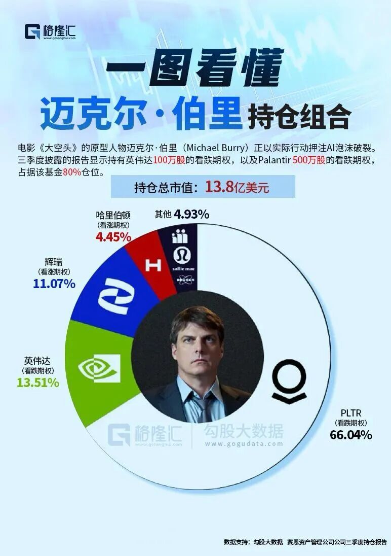 此前,Michael Burry执掌的Scion资产管理公司罕见地提前两周披露三季度13F报告,80%仓位做空Palantir和英伟达!