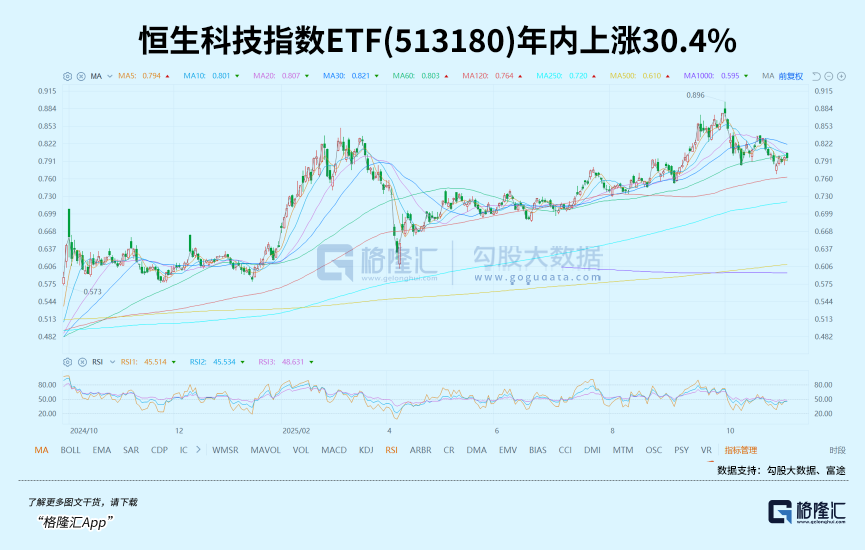 科技板块作为港股核心资产,一直是资金重要的流入方向。今日,港股虽高开低走,但尾盘探底回升,恒指、恒科指均收涨,展现出独特韧性。今年以来,恒生科技指数ETF(513180)上涨30.4%,港股通科技ETF基金(159101)跟踪的标的指数涨幅达44.19%。