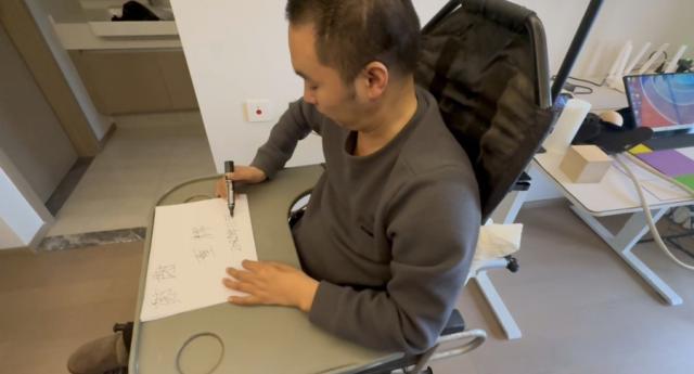 那天,小董在硬纸板上写下了一封只有两个字的信:“谢谢!”他在落款处写下自己的名字和日期,并把写信的视频发给了洪波团队。他说:“脑机接口不只是给我一个人,而是给全中国和我一样的患者带来了一个了不起的礼物,给了我们新的人生希望。”