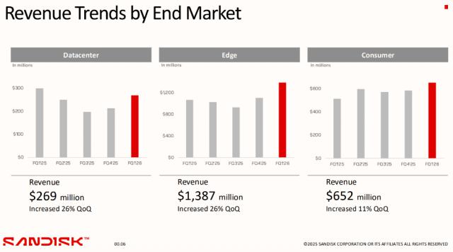 闪迪与领先公司强强联合,联名款Nintendo Switch2 microSD Express卡销量在财年第一季度突破90万台。通过在Xbox上推出新的Sandisk microSD for ROGAlly,扩大了掌机游戏的市场机会。