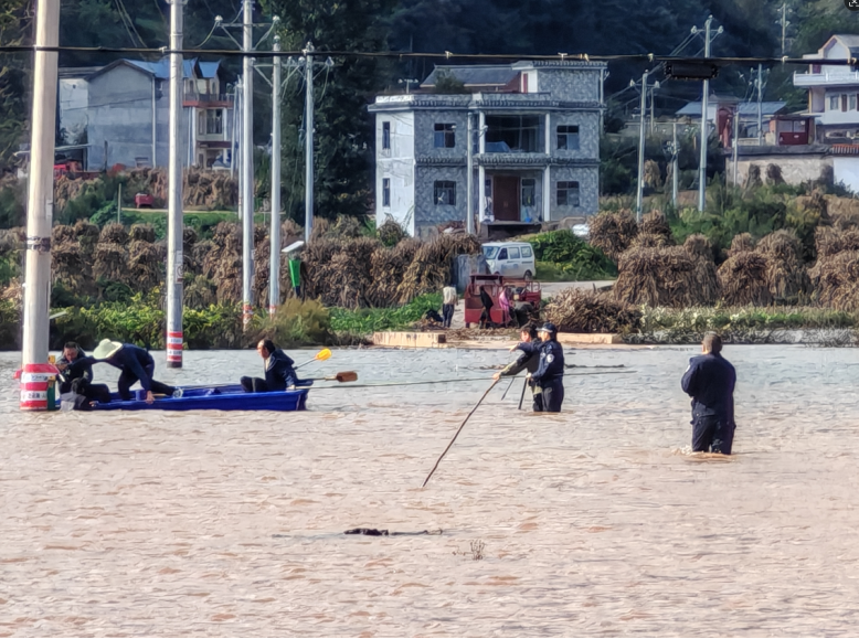 情况十分危急,新街派出所民警和市公安局驻村民警迅速行动。一组民警带着救生圈、救生绳快速赶往现场,另一组则前往周边村民家中借船,救援行动随即展开。