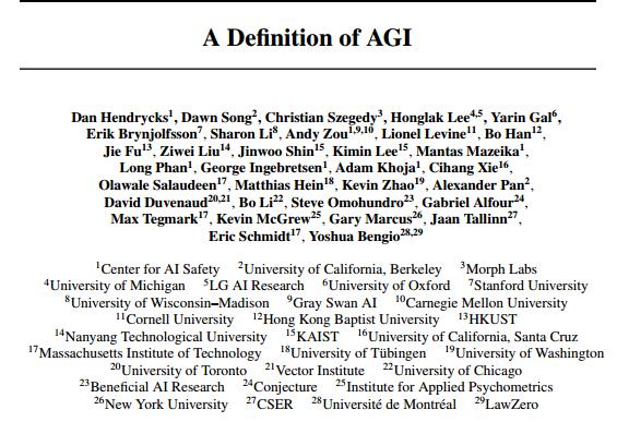 最近,一群顶尖大佬看不下去了,几十人联合发表了一篇论文,作者阵容堪称全明星,包括图灵奖得主、谷歌前CEO等。他们共同给出了目前第一个AGI的量化定义。