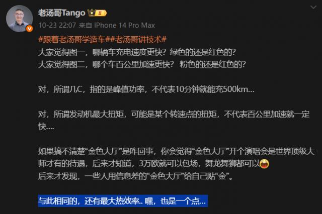 然而,近一两年,国产混动新车发动机热效率飙升,从43%到45%以上,如今没个46%甚至48%都不好意思宣传,全球最高热效率名号频繁易主。这看着虽爽,但有些反直觉。要是热效率提升如此容易,那之前的工程师都在忙啥?就连理想高管老汤哥都隐晦吐槽了一番。