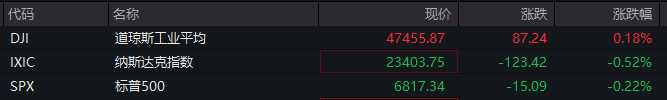当地时间11月11日,美股开盘表现不一,道指有小幅上涨,纳指和标普500指数则走低。截至发稿时,道指涨幅为0.18%,标普500指数下跌0.22%,纳指下跌0.52%。