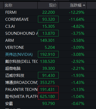 芯片股也普遍下跌,美光科技跌幅接近4%,ARM、拉姆研究等跌幅超过3%。