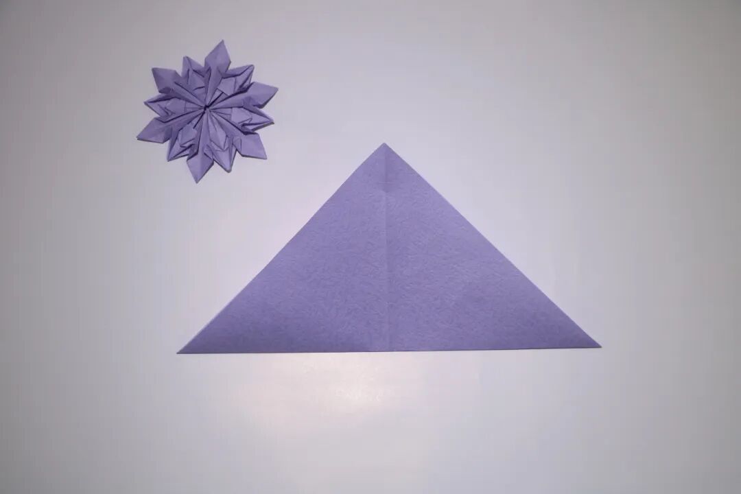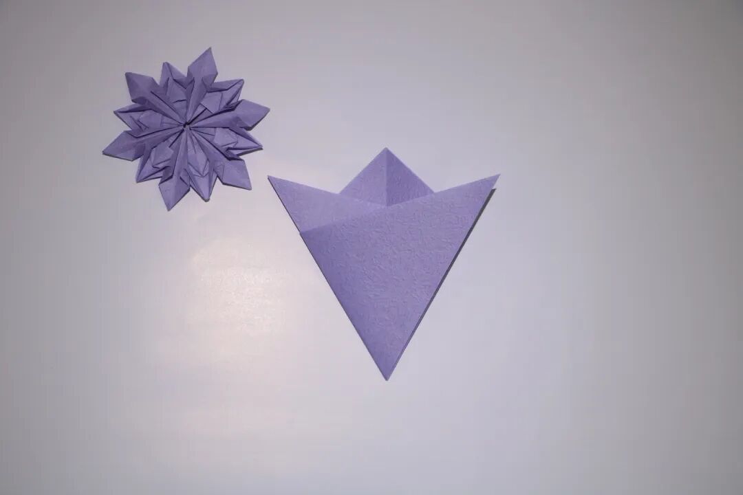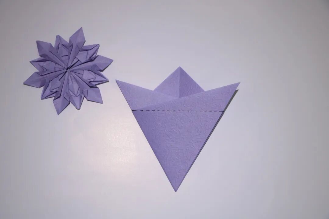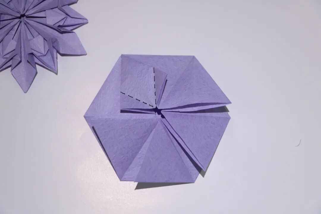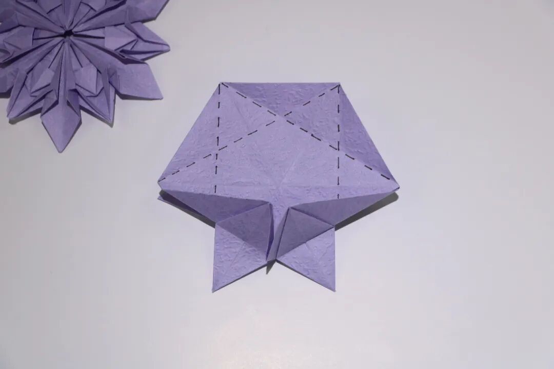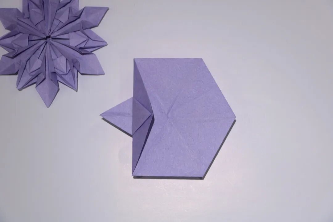 21. 沿着大三角的一侧中线对折,再把外圈三角的一侧对折。