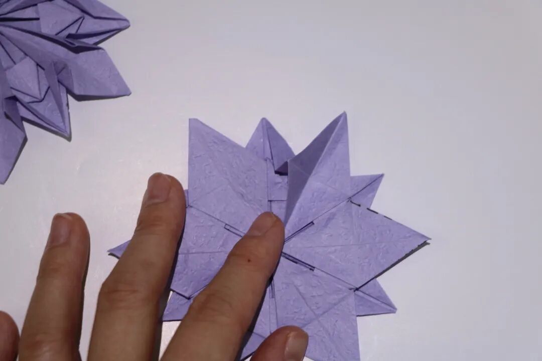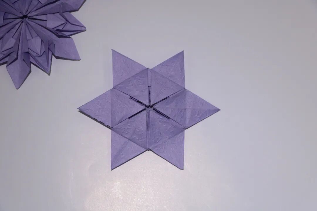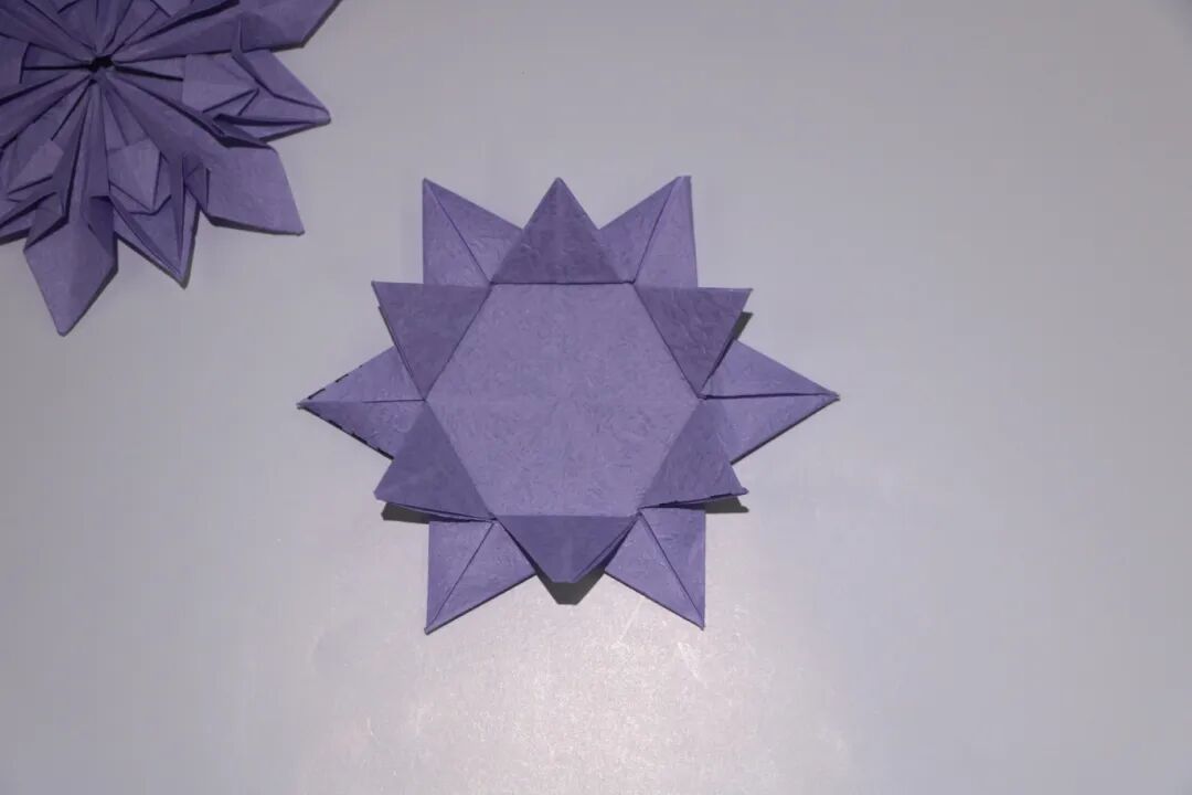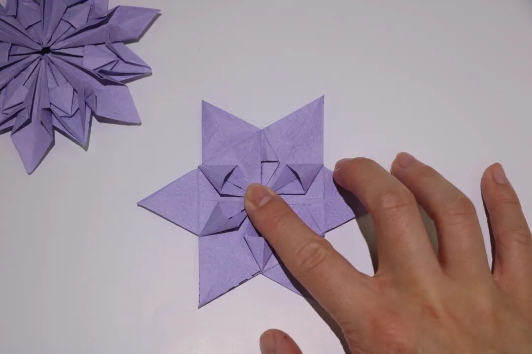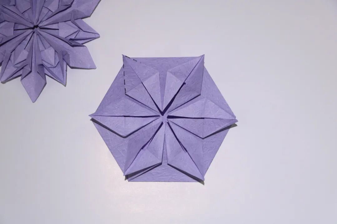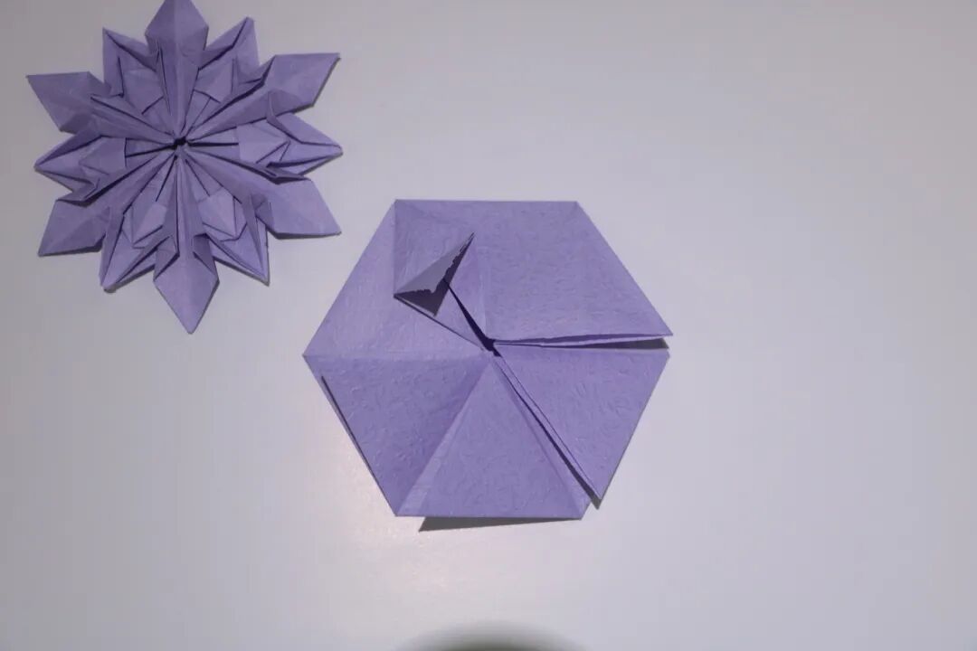21. 沿着大三角的一侧中线对折,再把外圈三角的一侧对折。