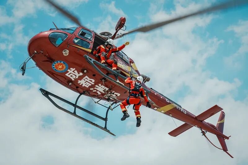 当天下午,发动机轰鸣声中,一架贝尔429直升机悬停在数十米高空,两名消防员顺着绳索快速滑降,不到5分钟就将“伤员”固定并转运至机舱。这样如同电影般的场景,在成都已成为现实。