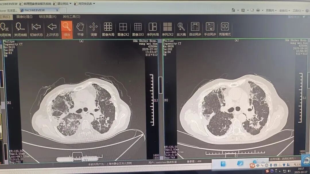 汪女士的求医历程漫长而艰辛。16岁起,她反复喘息,半个世纪里辗转多家医院,诊断始终停留在“支气管炎”和“支气管哮喘”上。近一年来,汪女士的病情愈发严重,乏力和呼吸困难如潮水般涌来,肺部CT检查显示“多发斑片影”,然而抗炎治疗却始终未见明显好转。