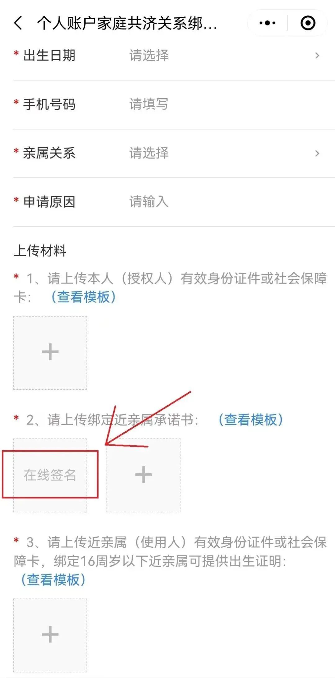 5.依次填写要绑定人员信息,上传相关材料,在上传承诺书时点击“在线签名”签署电子签名,点击【提交】按钮即可完成绑定申请。