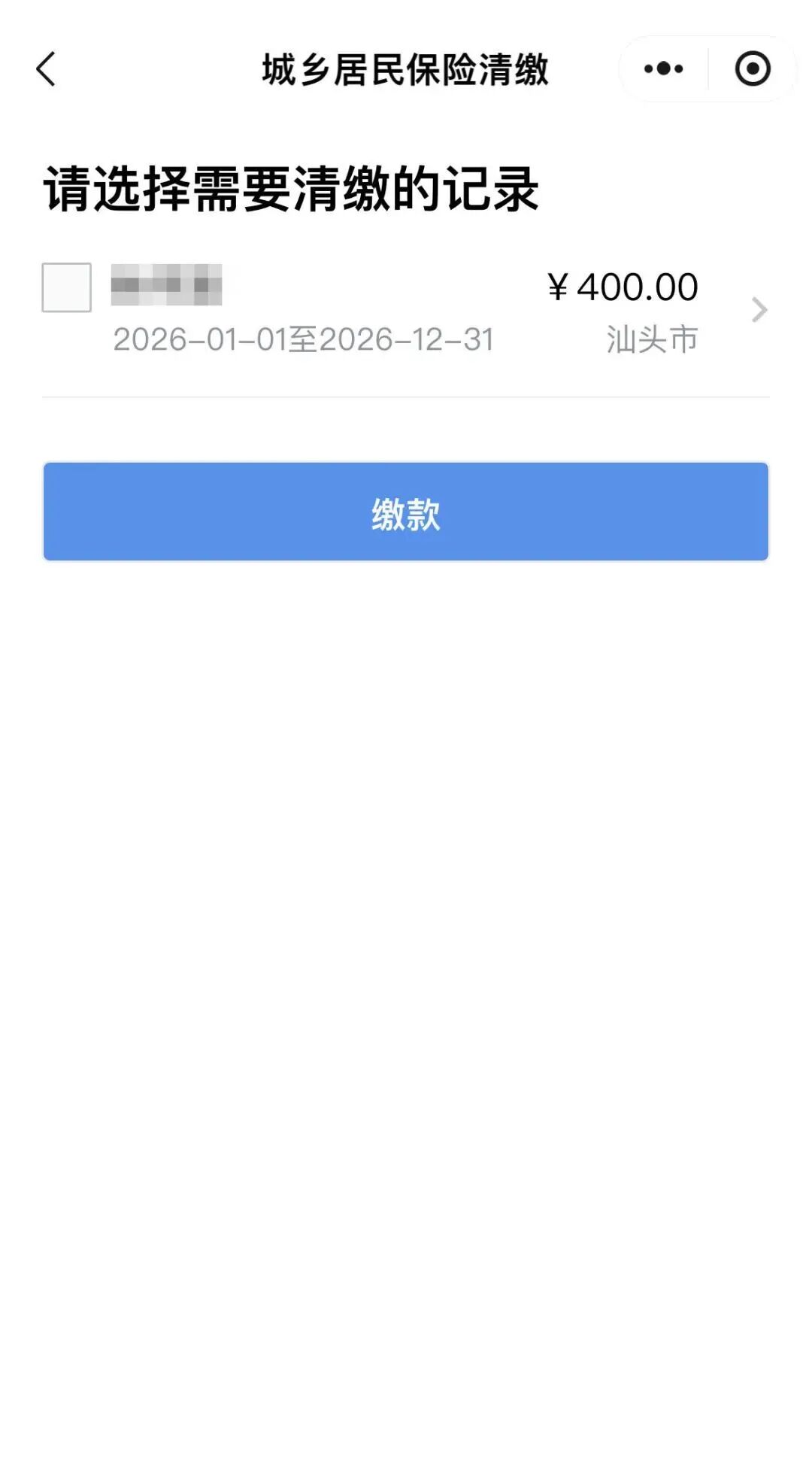 5.进入清缴页面,选择需要清缴的费款后,点击【缴款】按钮。