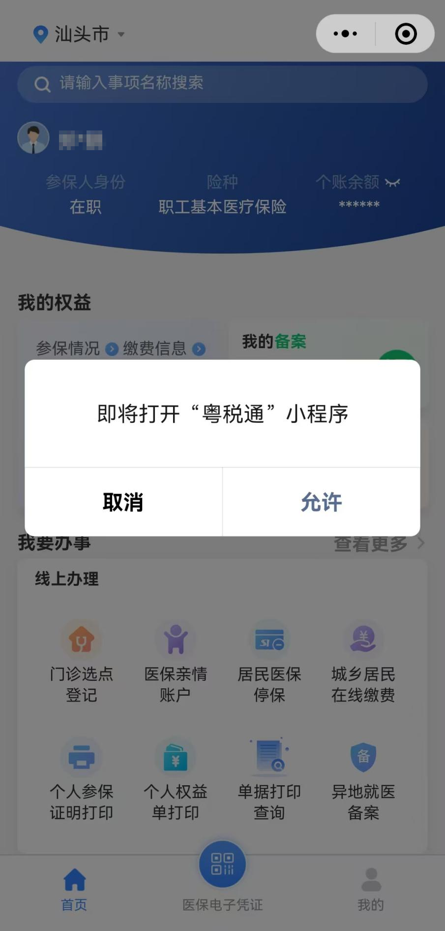 以“粤医保”微信小程序操作为例: