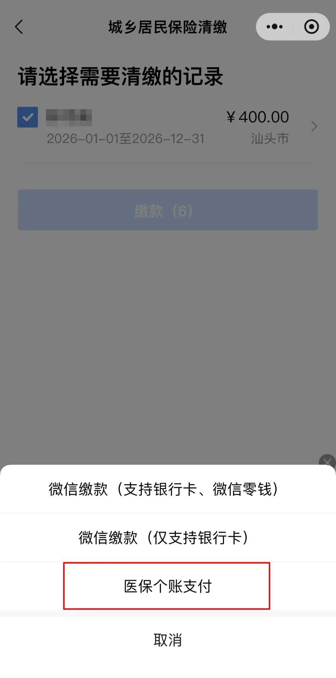 请注意:要确认您选择用于缴费的本人个人账户主卡余额充足哦~