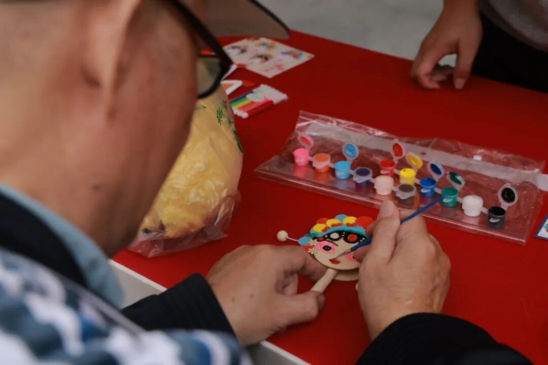“日晖有戏”戏曲主题体验区增添了许多有趣的新内容。戏曲爱好者可以充分发挥创意,绘制戏曲脸谱,用画笔展现生旦净丑的鲜明性格;还能定制一幅专属的戏曲Q版漫画,把自己融入戏曲角色中;可爱的戏曲谐小兔形象烫画DIY帆布包,吸引了众多戏艺爱好者挑选喜欢的形象,制作属于自己的戏曲帆布包。