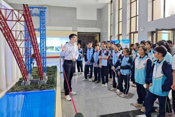 在广西大学,同学们参观海洋科教馆时,领略到了珊瑚礁的独特魅力,了解了珊瑚人工种植技术,还探究了吹沙填海的原理;在土木工程大型结构试验研究平台,同学们依次聆听了关于雅鲁藏布江藏木特大桥、平南三桥、天峨龙滩特大桥等大型工程的科普介绍,对中国拱桥创新技术惊叹不已,深切感受到“世界拱桥看中国,中国拱桥看广西”的自豪。