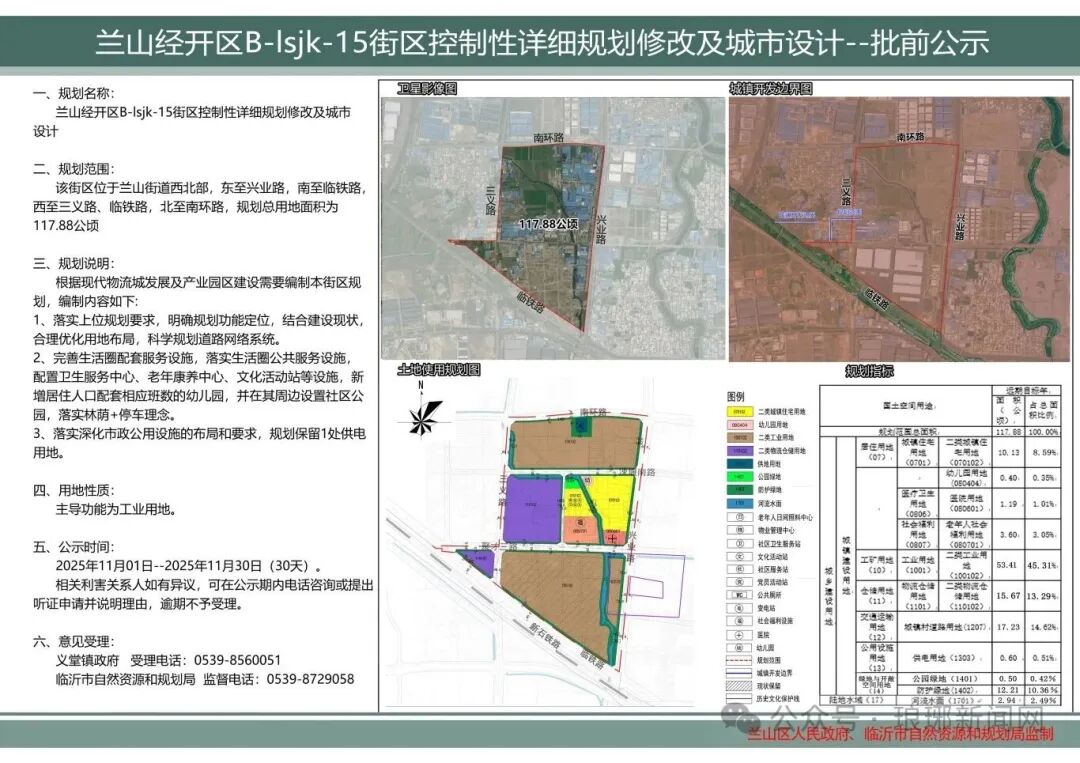 兰山经开区B - lsik - 15街区控制性详细规划修改及城市设计 -- 批前公示
