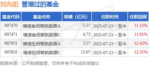 博道消费智航A增聘刘兆阳为基金经理