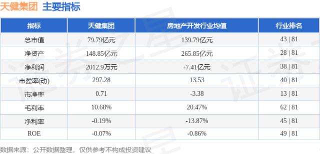 天健集团主要指标及行业内排名如下: