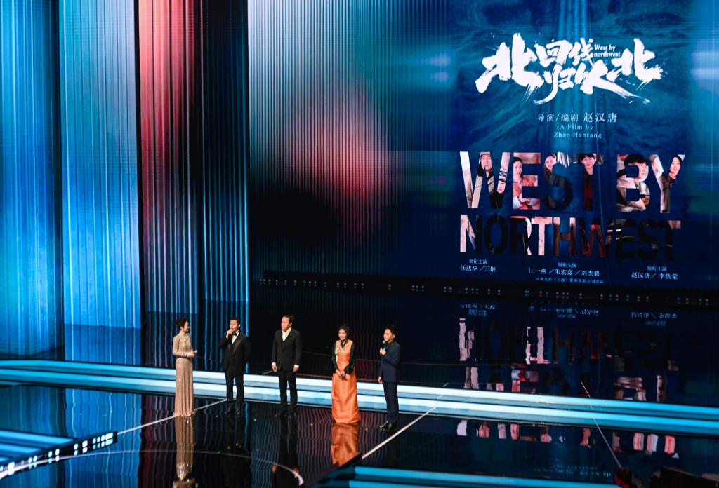 11月11日晚,新片新作《北回归线以北》主创人员在2025年中国金鸡百花电影节开幕式上进行推介。新华社记者 周义 摄