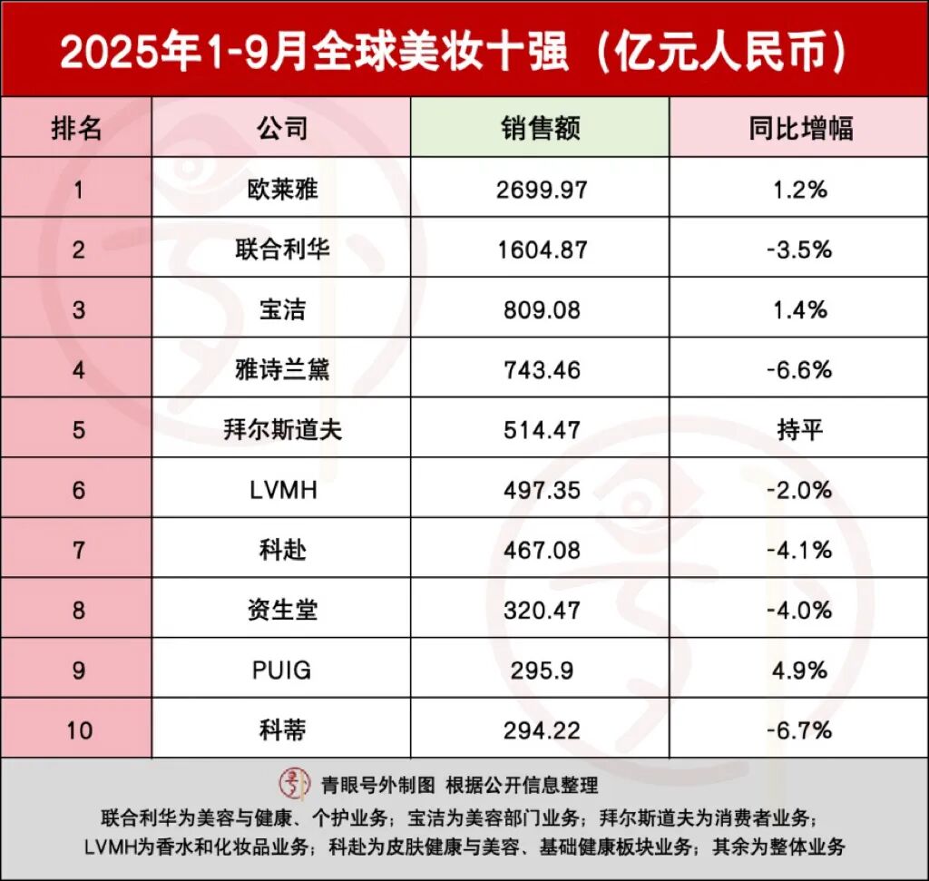 2025全球美妆十强排名变动:高端复苏,中国成增长关键