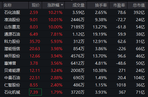 能源设备板块走势强劲,石化油服、准油股份、山东墨龙涨停,通源石油、科力股份、潜能恒信等跟涨。