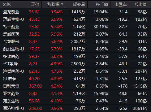 医药板块早盘表现出色,流感概念股反复活跃。博晖创新、药易购20cm涨停,盘龙药业涨停,特一药业、金花股份、多瑞医药等跟涨。