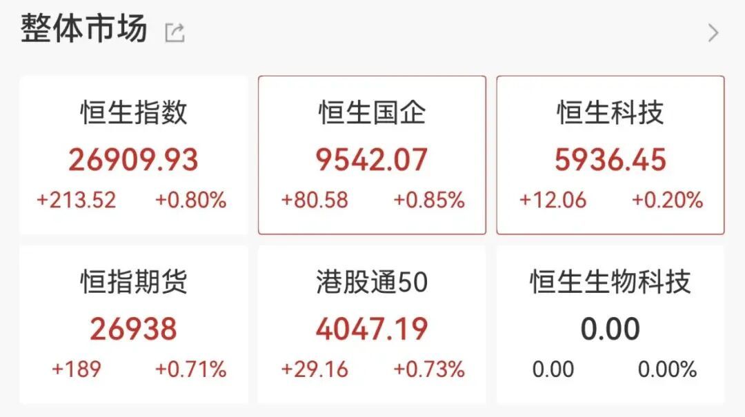 港股方面,三大指数飘红,京东健康、小米集团、携程集团均涨超2%。