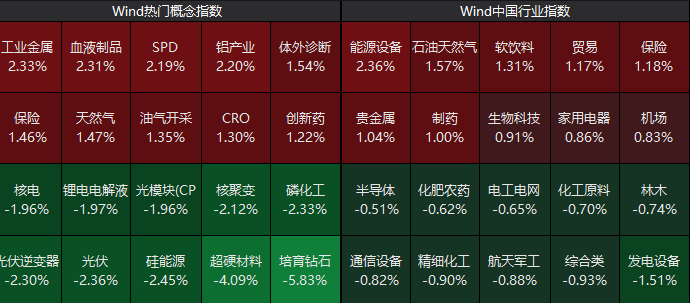 从板块表现来看,能源设备板块涨幅居前,医药板块震荡拉升,大消费板块表现活跃;而发电设备、超硬材料、存储芯片等方向则跌幅居前。