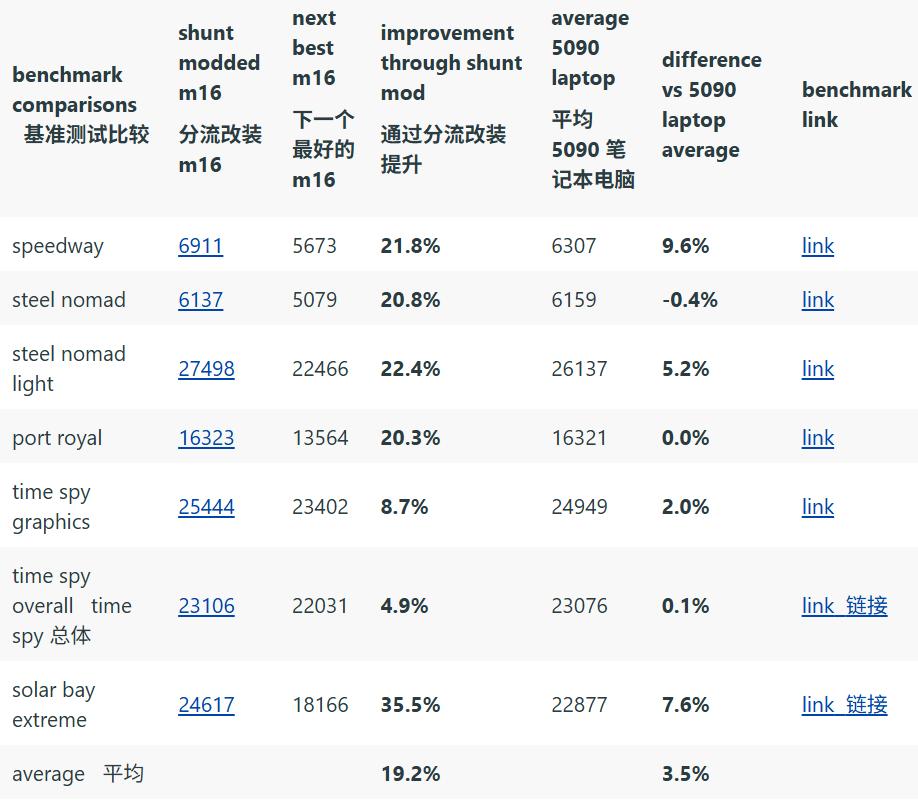 在240W供电支持下,他的幻16实测打败了搭载RTX 5090的笔记本电脑。除Steel Nomad项目落后0.4%外,其余3DMark测试项目基本领先,最高的SpeedWay领先9.6%。