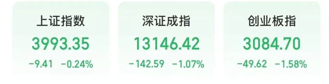 截至上午收盘,上证指数下跌0.24%,深证成指下跌1.07%,创业板指下跌1.58%。