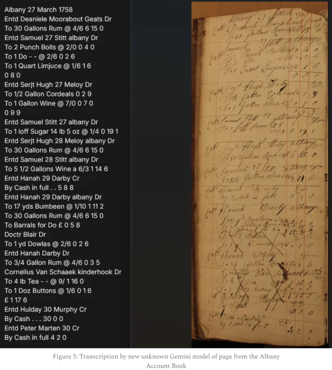 前不久,谷歌AI Studio上的神秘模型引发关注,历史学家Mark Humphries用200多年前一位奥尔巴尼商人的“天书”账本,测试大模型在手写文本识别(HTR)上的能力。