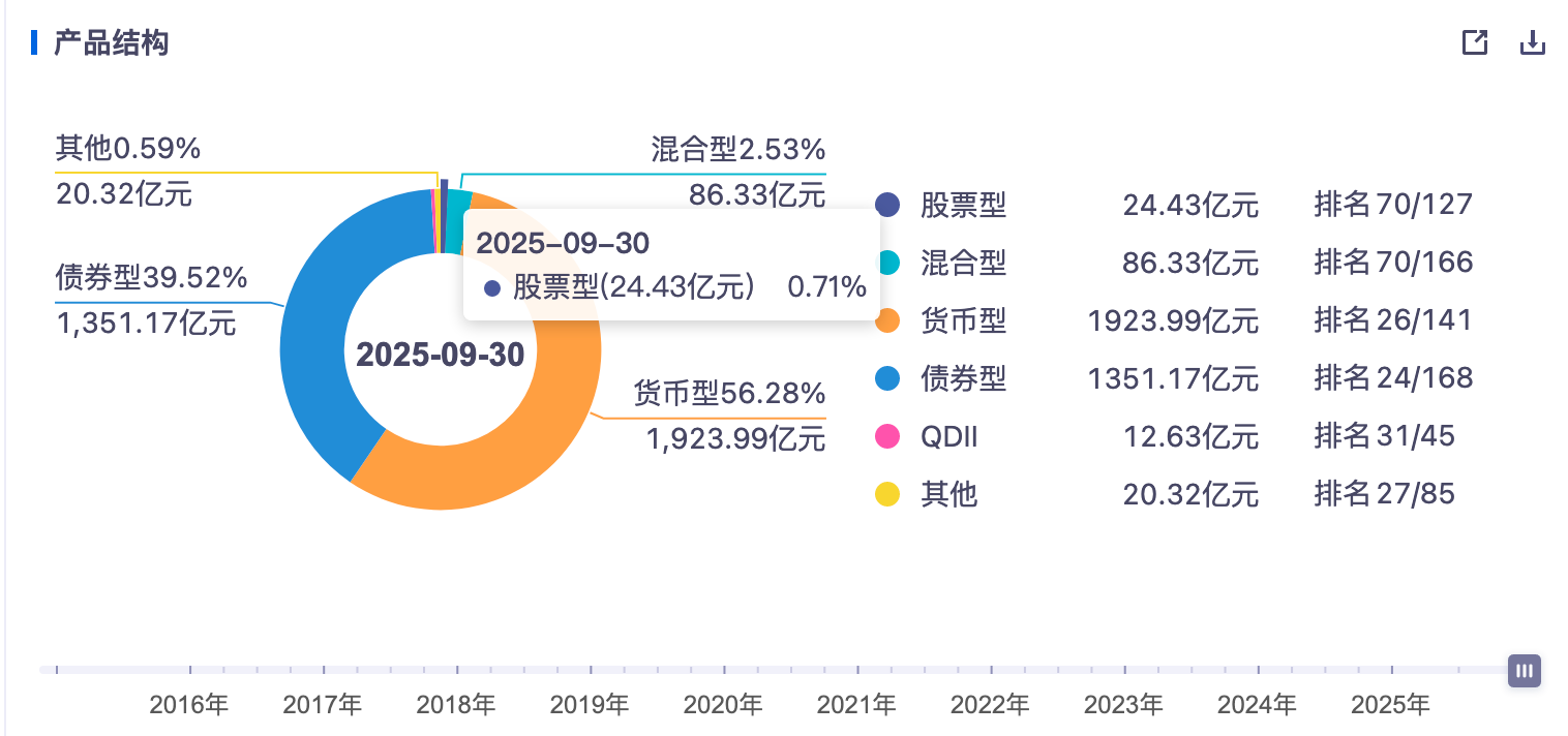 长期业绩不佳使持有者失去耐心,浦银安盛品质优选混合规模大幅收缩,从成立时的26.25亿元,到2025年9月末仅剩7.01亿元,缩水超70%。