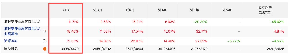 其中,浦银安盛品质优选混合自2021年底成立以来亏损超45%,截至2025年11月10日净值为0.5438,几近腰斩,在同类2526只产品中排名2478,处于倒数位置。