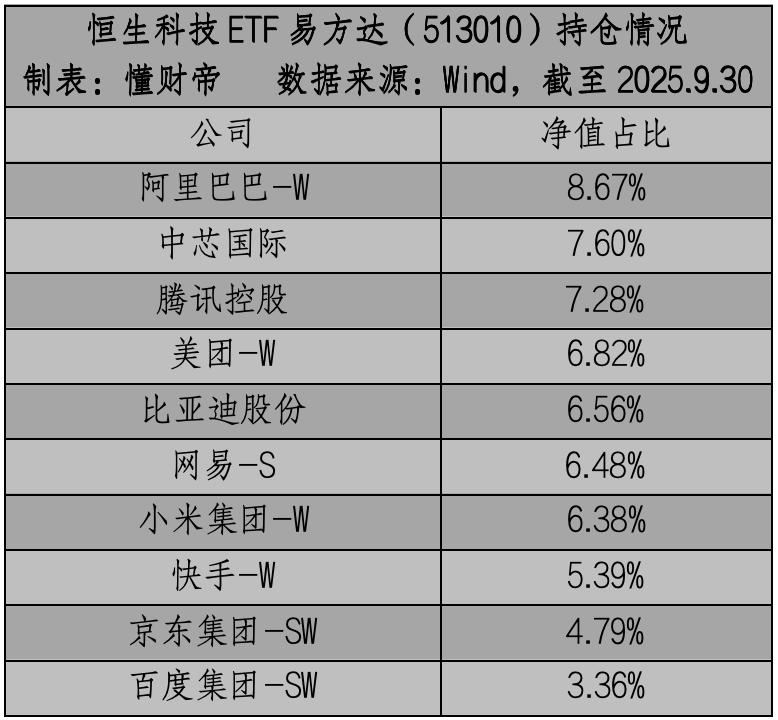 从宏观角度看,国产软件的崛起不仅是产业升级,更是中国科技实力和AI能力的彰显,是确定的趋势。与此同时,乘着AI东风,跟踪恒生科技指数的恒生科技ETF易方达(513010)等产品近期也备受关注。