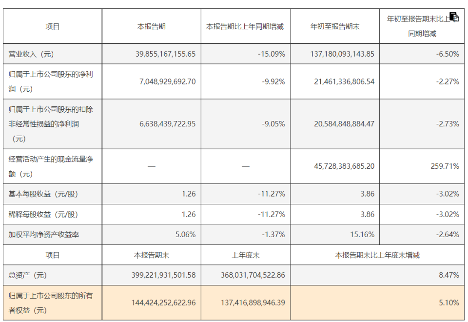 三季度格力营收398.6亿元,同比下降15%,归母利润同比下降9.9%。
