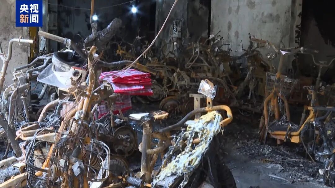 火灾原因调查组确定起火部位,锁定引发火灾的电动自行车,查明起火原因是电动自行车电池热失控引燃周边可燃物。