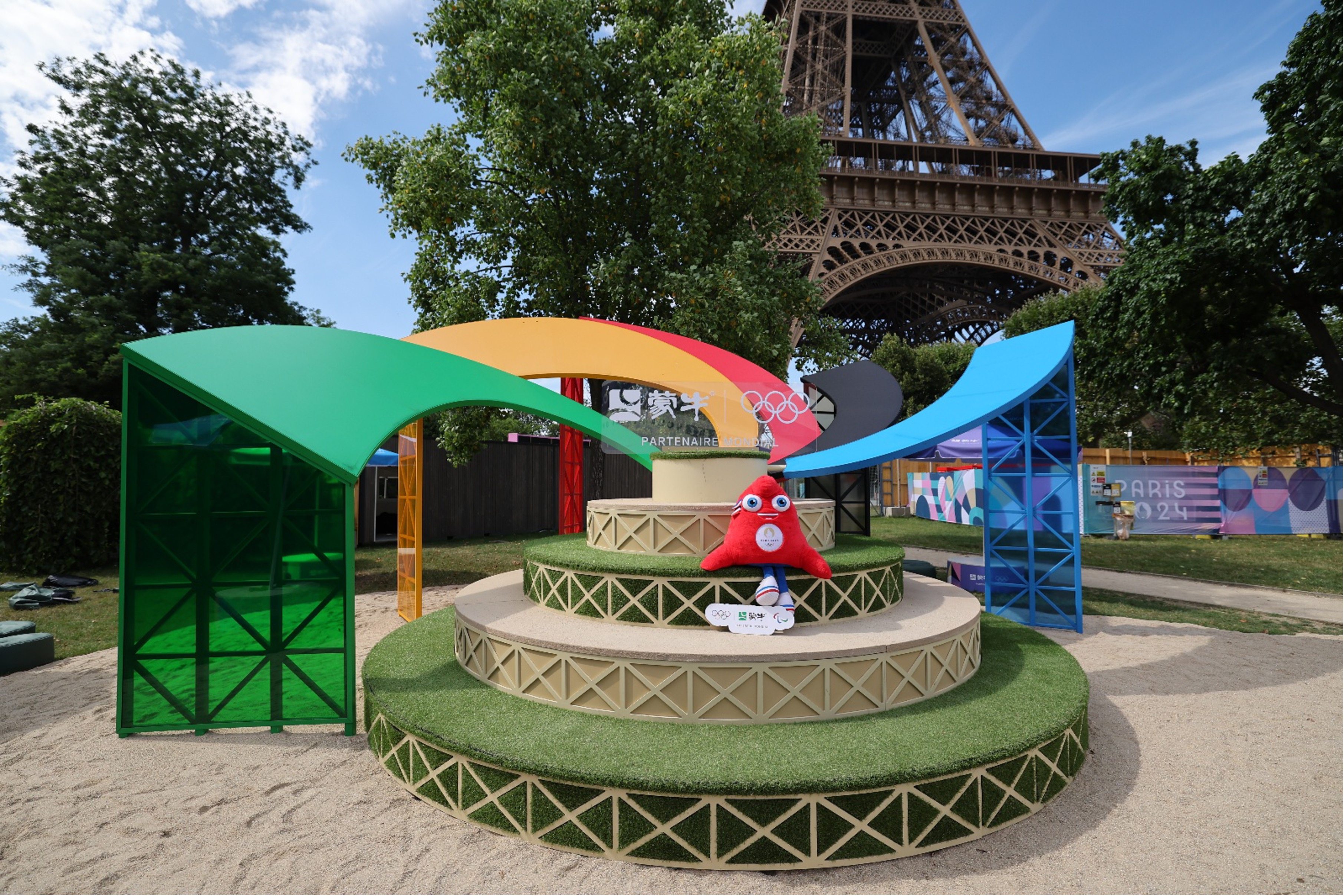 2024年巴黎奥运期间,蒙牛将乌兰布和沙漠治理成果带到巴黎。在埃菲尔铁塔下的沙滩排球场,打造了140平方米的沙漠绿洲休闲区,向全球展示中国防沙治沙的成果与决心,呼吁更多人加入绿色行动。