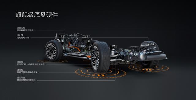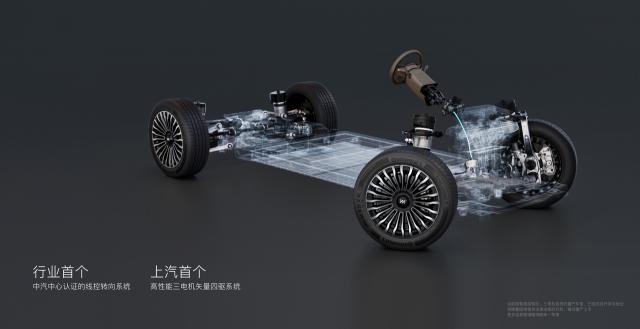 底盘方面,LS9有150mm行程的双腔闭式空悬。发布会上还提到全线控转向技术,该技术取消方向盘与车轮的机械连接,靠电信号实现转向传递和反馈,和赛车游戏方向盘操作原理类似。