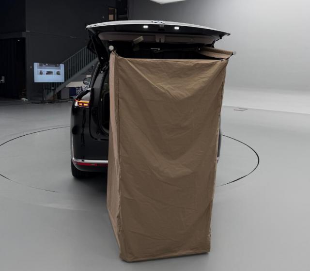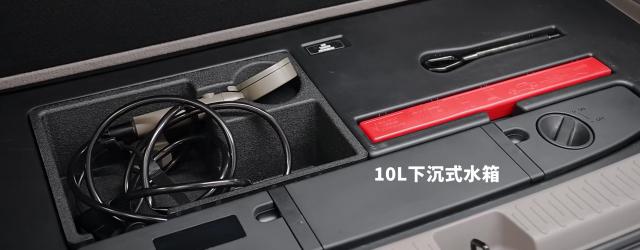 这是额外选装“野奢户外套装”才有的功能,在后备箱有个下沉式10L的小水箱,连接车载220V电源,1200W的功率,10分钟就能把水加热到45度。