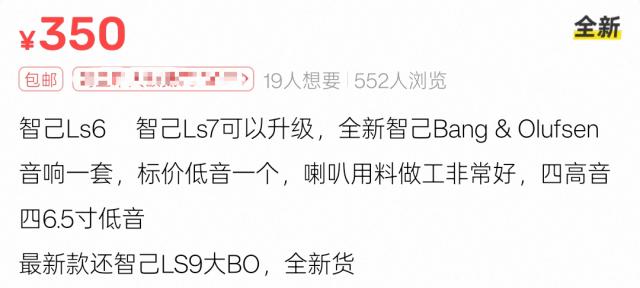更有意思的是,这套B&O音响组件,在LS9没预售的时候就在某个APP开卖了,一个低音单元350块,还能适配LS6和LS7,真假难辨,入手需谨慎。