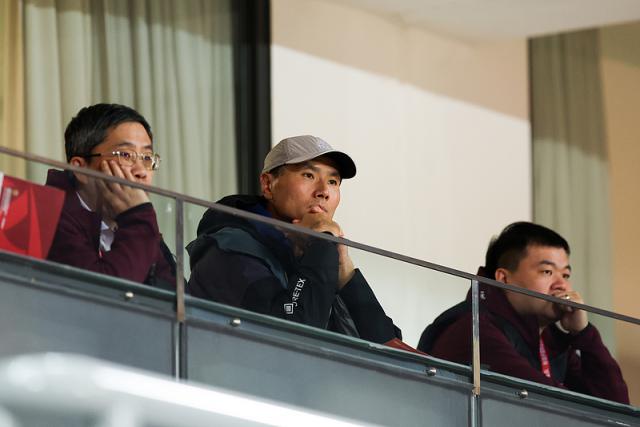 国足主帅邵佳一(中)前往现场观战