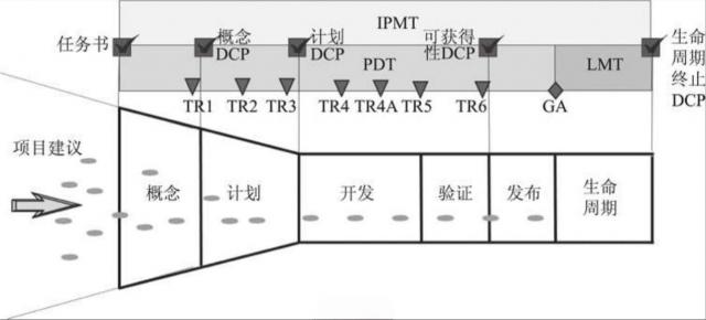 IPD流程是分阶段的结构化流程,各阶段由门径分开,是业界最佳的产品开发和管理方法。它把产品开发分为概念、计划、开发、验证、发布及其生命周期管理六个阶段,每个阶段目标明确,流程中定义了决策评审点(DCP)和技术评审点(TR)。每个决策评审点有统一衡量标准,完成规定工作和质量要求才能进入下一阶段。IPD流程明确了PDT、LMT、IPMT的分层管理体系(如图1所示)。
