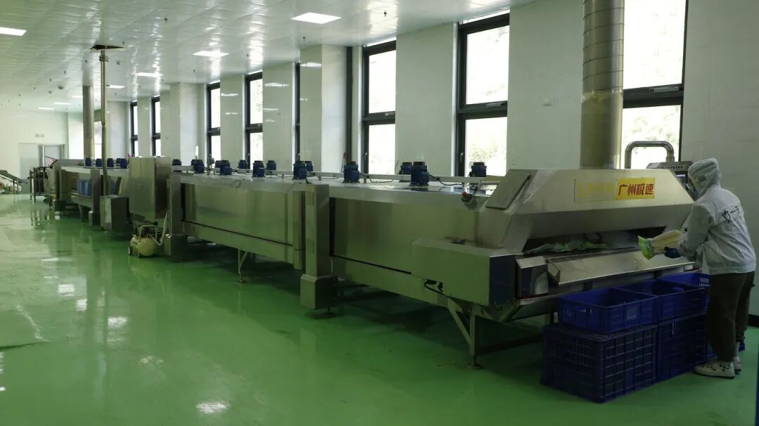 在木杆镇的连片竹林中,竹农刚采摘的方竹鲜笋正运往村集体经济公司——云南竹一无二食品科技有限责任公司的生产车间。车间内,新引进的竹笋加工生产线高速运转,数十名工人进行流水作业,对新鲜采收的秋笋依次进行清洗、杀青、脱衣、分拣、包装、速冻等工序。在液氮罐释放出的白色雾气里,竹笋的鲜嫩瞬间被锁住,随后存于冻库,等待打包发往全国各地。