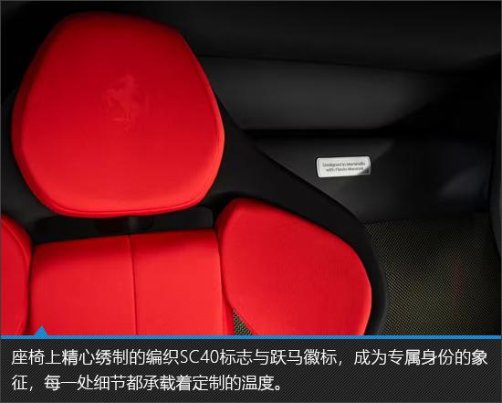 SC40是一款真正独一无二的定制佳作,由法拉利特别项目Special Projects部门为特定客户量身打造。新车名称“SC40”以立体浮雕的形式镌刻在车身侧面,这不仅象征着它的独特身份,也向品牌历史上最具代表性的超级跑车F40致敬。不过,SC40并非是对经典的简单复制,而是对法拉利设计哲学的现代化诠释。